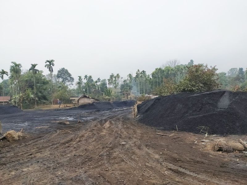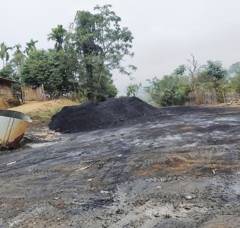 Extracted coal for sale in Longnak under Mokokchung district. At Longnak area, which falls under Changki village, and situated near Mangkolemba sub-division, the environmental impact of coal mining is adverse. It is reported that the practice in the area is rat-hole coal mining. Most of the cavities/pits dug to extract coal are left unfilled and unattended. This has led to landslides, (which obstruct roads) acid mine drainage and contamination of groundwater, streams and rivers. On March 16, 2021, four miners died in a suspected gas poisoning inside a coal mine located in between Mangkolemba sub-divisional headquarters and the Longnak valley. Meanwhile, the Public Accounts Committee (PAC) 2020-21 has reported that “despite coal mining activities taking place, Nagaland has no mechanism in place to check the coal mines.” The PAC also reported that 44 coal mining units in Nagaland operated without permission. (Morung Photo)