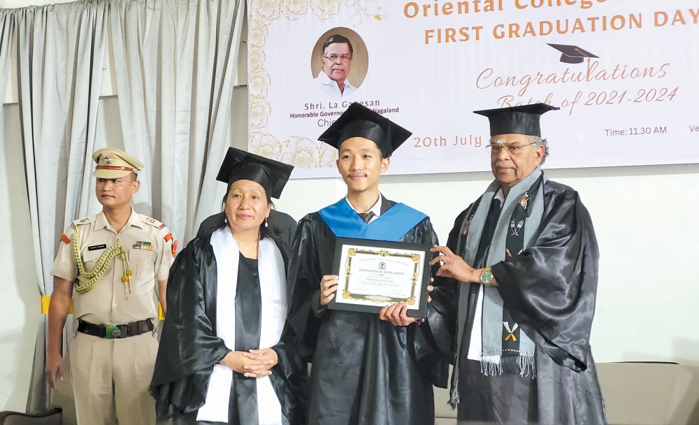 Earlier, Oriental College Principal, Dr Khrieriezhünuo Dzüvichü delivered welcome address while Kevikhrunyü Kiso spoke on behalf of the graduating students. Hopong and Senti and Dzüzienuo presented special numbers. Vizotuonyü Suokhrie, Asst Pastor, CRC Kohima village invoked God’s blessings. The programme was led by Oriental College vice principal (Adm) Chibeni Murry while vote of thanks was proposed by Chubanenla Imchen, Dean, Students’ Welfare.