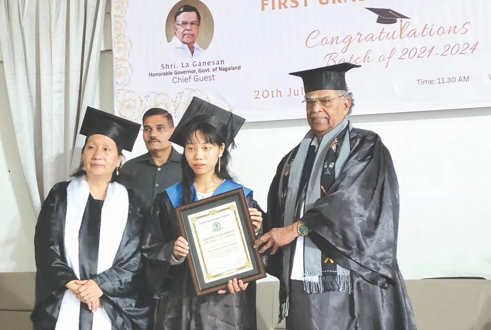 The Oriental College, Kohima today conducted its 1st Graduation Day 2024 with Nagaland’s Governor La Ganesan as the chief guest. Gracing the occasion, Ganesan handed over degree certificates to 91 graduated students of 2021-2024 batch.