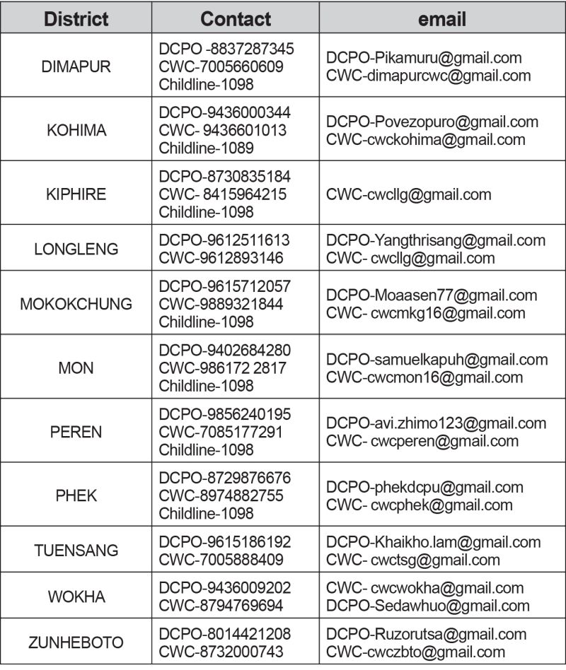 The Director, CPS, Department of Social Welfare, A Tosheli Zhimomi has notified that in case a child in distress below the age of 18 years falls under the stated categories, are to be reported to the Child Protection stakeholders, with reference letter from the (village/ward, block, panchayat, and colony covid core committees) within 20 days of the demise of parents.