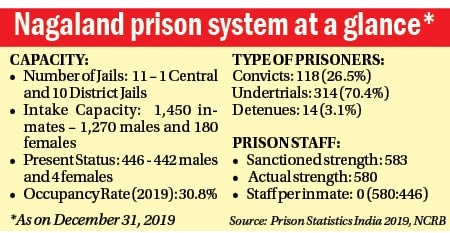 According to the ‘Prison Statistics India 2019’ released by the National Crime Records Bureau, the overall prison occupancy rate in Nagaland as of December 31, 2019 was just 30.8%, the best among the States, and second overall after Union Territory (UT) Lakshadweep (6.3%).