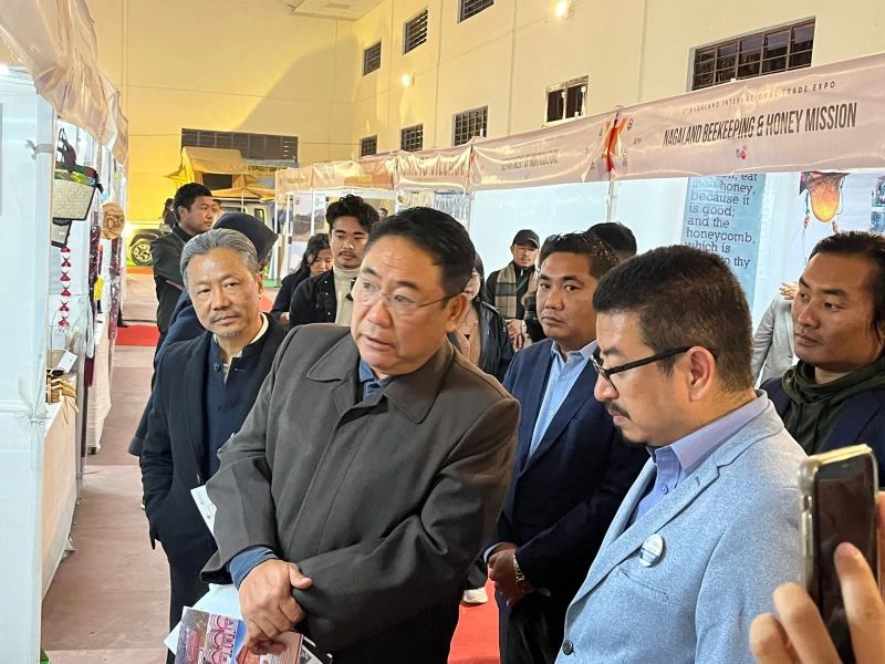 Advisor Moatoshi Longkumer inspects the stalls at NITex, Dimapur on January 20. (Morung Photo)