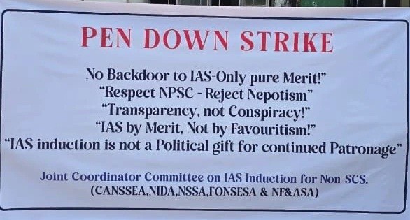 Kohima, October 23 (MExN): The Joint Coordination Committee (JCC), comprising CANSSEA, FONSESA, NIDA, NSSA, and NF&ASA, today announced that it will intensify the ongoing ‘Pen Down Strike and Tools Down Strike’ demanding transparency and merit in the recent IAS induction process form October 27.