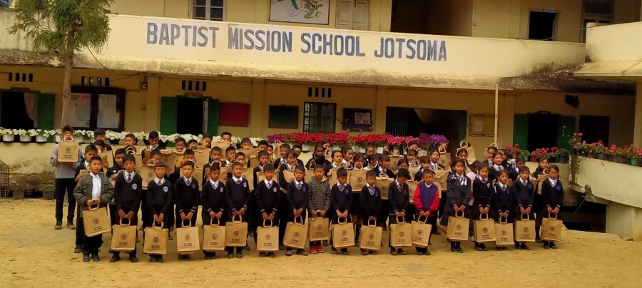 BMS: Baptist Mission School, Jotsoma observed WED where Classes 9 and 10 students along with some teachers went for plantation drive with Puliebadze Club, Jotsoma to plant tree saplings in and around Jotsoma. Classes 1 to 8 cleaned the school campus as well as the roadside and planted flower plants. During the morning assembly, the school Headmaster highlighted on the importance of avoiding plastics as well as to follow the 5 R’s (Reduce, Reuse, Recycle, and Repurpose). They also took the pledge to make the school campus a ‘Plastic Free Zone.’ With the help of PHE Department, BMS made 100 jute carry bags and distributed to the members of BMS Sanitation Club.