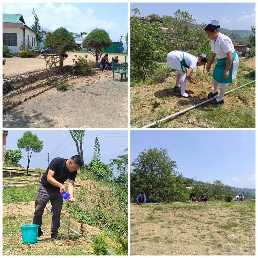 CHC Chozuba: In response to the call by CPO on a mega tree plantation drive, the CHC Chozuba observed the WED under the banner ‘Our Earth Our Health Our Responsibility’ and theme #BeatPlasticPollution. Dr Lolekhol Pucho SMO addressed the staff during the pledge programme. To mark the day, more than 10 trees were planted in the hospital surrounding areas and a mass social work was also conducted.
