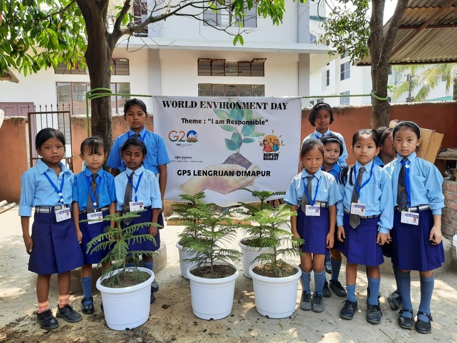 Shalom Public School: Under the campaign Beat Plastic Pollution, Ecosystem Restoration, Shalom Public School, Chümoukedima participated in the plantation drive organised in the office of Deputy Commissioner, Chümoukedima. Shalom Public School children, staff and members of the district office headed by Abhinav Shivam IAS, DC, Temsuchuba Jamir NCS, SDO(C), Chumbenthung Murry, SDO(C) and Dobashis planted saplings and also cleaned the locality.