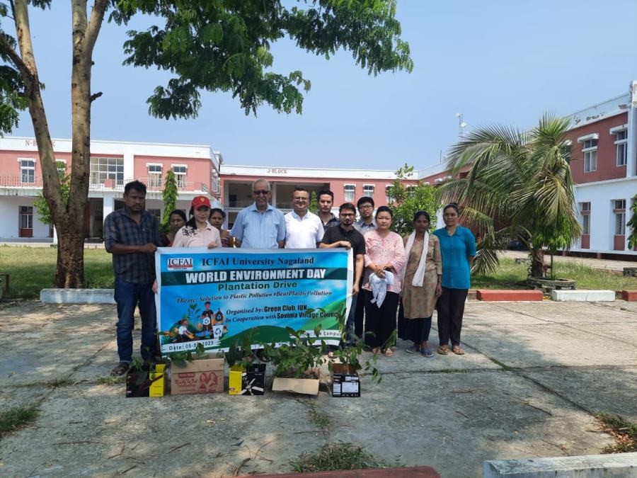 ICFAI University: Green Club of ICFAI University Nagaland in cooperation with Sovima Village Council organised a plantation drive celebrating the WED under the theme ‘Solutions to Plastic Pollution.’ Members from all sections including faculty and staff took part in the drive.