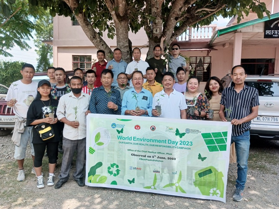 Phek: Phek district celebrated WED under the theme ‘Beat Plastic Pollution’ at CMO office. It was also celebrated in all the health units across the district. To mark the day, the CMO office conducted a short programme which was followed by pledge reading by District Program Officers, NGOs and staff of various vertical programmes. Dr Pewezo Khalo DPO RCH/UIP delivered the keynote address, Dr Shevo Hiese, DNO for National Program for Climate Change and Human Health (NPCCHH) and Dr Limatoshi, Epidemiologist spoke on the significance of the day. A mass tree plantation drive was also conducted.