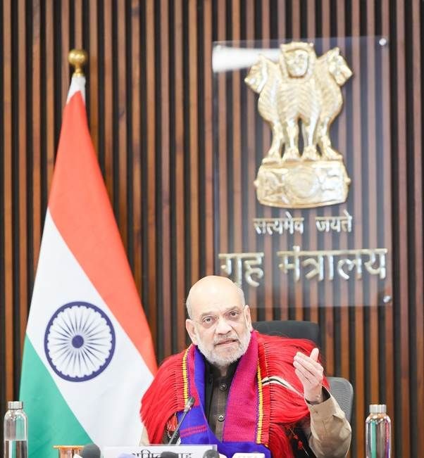 Union Home Minister Amit addresses the signing of the Memorandum of Agreement on the Frontier Nagaland Territorial Authority between the Government of India, the Government of Nagaland and the Eastern Nagaland Peoples’ Organisation in New Delhi on February 5. (PIB Photo)