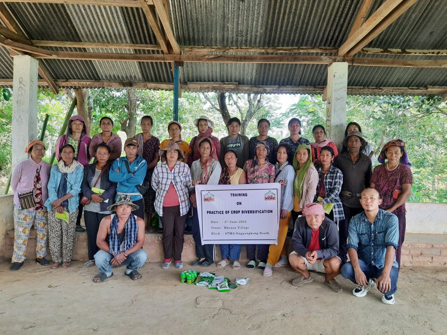Ongpangkong South Block of Agricultural Technology Management Agency, Mokokchung conducted a training programme on ‘Practice of Crop Diversification’ at Khensa village on June 5. The resource person Bendangkumzuk, BTM highlighted on the importance of crop diversification, its different types and how it can generate higher income by adopting new approach and methodology in agricultural production. The programme ended with discussion and interaction session followed by distribution of seeds (Soyabean, pole beans, okra, sponge gourd, tomato, coriander, long yard beans) and neem oil. Altogether 30 farmers attended the programme along with ATMA staffs.