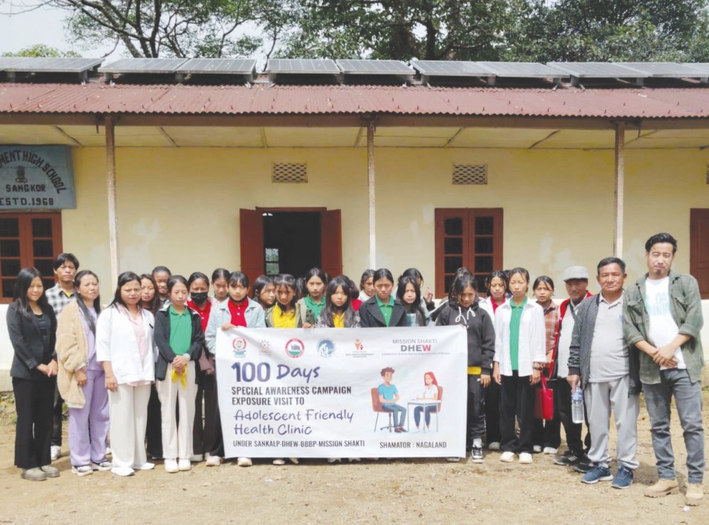 Shamator District Administration led by Athrong SDO (C) and under Mission Shakti-SANKALP-BBBP-DHEW on September 28 organised exposure trip for Adolescents Friendly Health clinic to Sangphur Village Health and Wellness Center the resource person was Epibeni Lotha CHO Sangphur HWC spoke on the theme Menstrual Hygiene, Early marriage, Gender sensitization and HIV & AIDS. Staffs of HWC also enacted a role play on the importance of girls Education. Free sanitary pads were also distributed to the young Adolescents girls of Christian High School Shamator under BBBP. The chairman of Sangphur Village Council also exhorted the young girls to be an asset of the society.