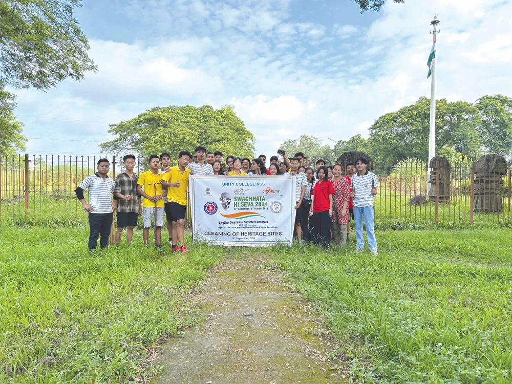 The Unity College NSS Cell/volunteers carried out cleanliness activity at Rajbari Kachari (Ruins of Ford) Dimapur under the banner ‘‘Cleaning of Heritage Sites and Monuments’’ on September 28. This drive focused on collection of plastic waste, cleaning and sprucing up the foot path and sweeping away waste materials within the site. The activity was in line with the directives from the Ministry of Youth Affairs and Sports, Regional Directorate of NSS, to carry out Swachhata Hi Seva (SHS) or Swachh Bharat Mission Campaign.