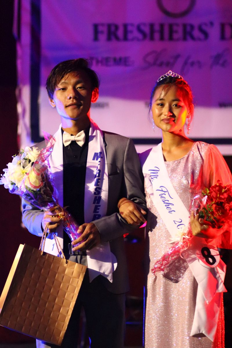 Thejangulie Kuotsu and Tatongmongla were crowned as Mr and Miss Fresher 2021 of KROS College, Kohima during the college fresher day held in its campus on October 9. The programme segments included formal and casual rounds, where 13 males and 13 females contested for the title of Mr & Ms Fresher 2021. The judges selected the five best contestants each from both the categories for the final round. Number of special songs and dances were also presented by the senior's students as well as the freshers during the occasion. (DIPR Photo)