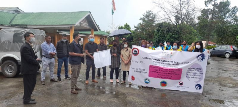 The annual celebration of the nationwide Poshan Maah 2021 for Chiephobozou Block was flagged-off by Chiephobozou ADC Vekhoyi Chakhesang. CDPO Dzüziengulie Terhüja, addressed the gathering and apprised the Anganwadi Workers on the activities that need to be conducted during the celebration such as plantation activities under Poshan Vatika, Yoga and Ayush for Nutrition, Identification of SAM/MAM, Anemia screening, Poshan Panchayat. Poshan Maah will culminate on September 30. (Photo Courtesy: CDPO Office)