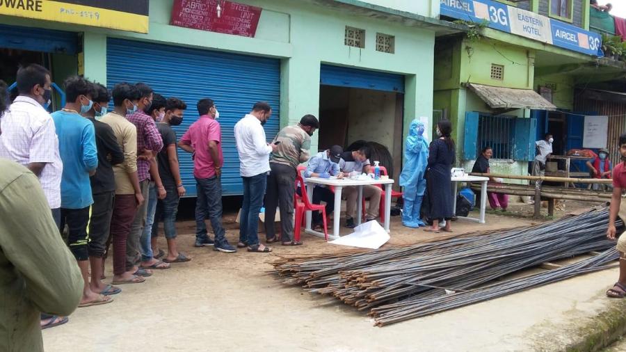 District Task Force, Mokokchung carried out random testing for shopkeepers, barbers, street vendors, labourers and public volunteers around Mokokchung Town from July 26 to August 5. A press release from the Chief Medical Officer office, Mokokchung stated that a total of 597 individuals were tested and out of which 5 were detected positive for COVID-19. The Urban Surveillance Team remarked that the turnout among the local shop owners was below expectation and suggested that it is very important for the local shop owners to get tested and know their status to check and control the pandemic. (Photo Courtesy: CMO office Mokokchung)