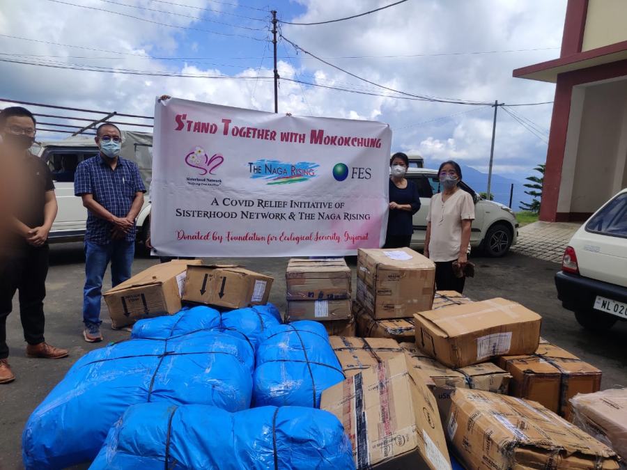 Sisterhood Network (SN) and The Naga Rising (TNR) in collaboration with Foundation of Ecological Security (FES) Gujarat, India donated 77 basic COVID-19 care kits for distribution among COVID Hospital, COVID Care Centre and Health facilities in the District. The kits were received by Dr Limatula Aier, Medical Superintendent, IMDH in presence of Dr Ayangla Saku, DPO (UIP & RCH), Dr Temsuyanger, ZLO & DMHP and Zerütso Kesiezie, EAC HQ, Mokokchung. (Photo Courtesy: CMO office Mokokchung)