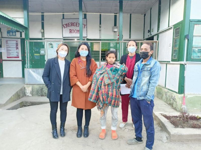 Dr Sanuzolu (Pediatrician) and Dr Yopovinu (Pathologist) with a pre-term baby and her parents after she was delivered at 32 weeks at District Hospital, Longleng. With active management led by the pediatrician, the baby survived and has been discharged from the hospital after 19 fighting days. With the posting of specialists in the district hospital, many complicated cases which were previously referred are now managed here. This has been possible because of cooperation from all the doctors, nurses, and staff. (DIPR Photo)