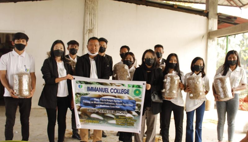 B.Sc Botany (hons) 6th semester students of Immanuel College undertook one day Mushroom cultivation training at Konger Agritech, Aoyimkum, Dimapur on February 14. Dr Sosang Longkumer, Founder of Konger Agritech highlighted the importance of mushroom and its marketing, gave a hands-on training on the cultivation of mushroom and spawn production. The students visited the farm and spawn production laboratory. Temsutola HOD, Botany and Dr Jichule Seb, Assistant Professor accompanied the students for the training.