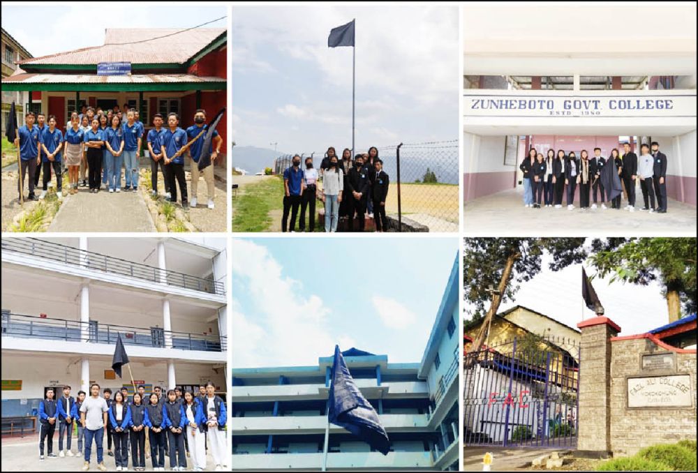 All Nagaland College Students’ Union (ANCSU) units hoisted Black Flag in their respective college expressing their resentment and demanding justice against the inaction of authorities concerned despite the perpetrators publicly claiming their responsibility for the atrocious crime of vandalizing the NSF and ANCSU office at the wee hours of May 27. “This exercise shall continue until befitting punishment as per the law is initiated by the law enforcing agency against the culprits involved in the criminal act,” stated a press release from the Media Cell, ANCSU. (Photo Courtesy: ANCSU)