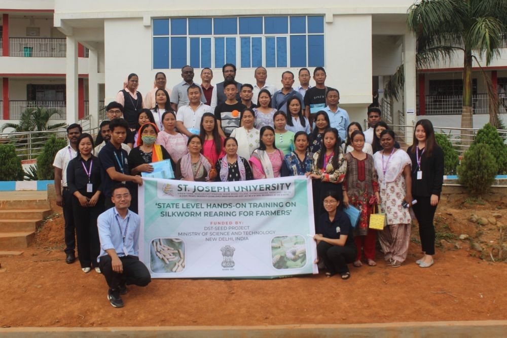 Participants and resource person pose for the lens during the two day state level training program on silkworm rearing for farmers which was held at St Joseph University, Dimapur.