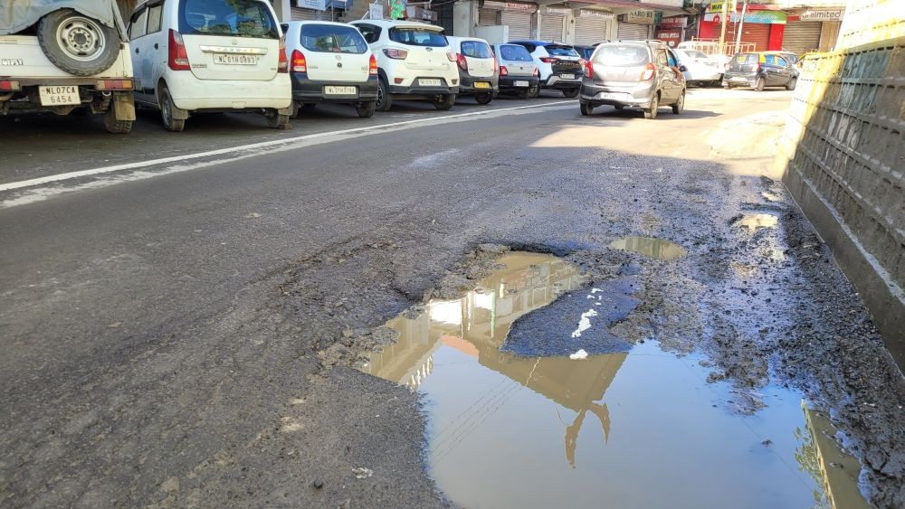 Nagaland 6th August 2023 Pothole on the busy street along D Block to Phoolbari Kohima remains unattended, causing inconvenience to commuters. (Morung Photo)