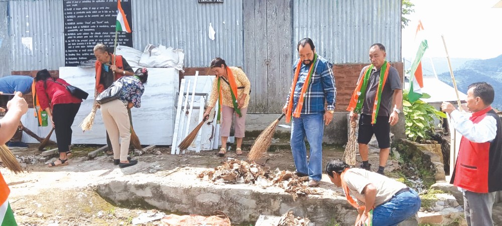 Marking Har Ghar Tiranga campaign on the 78th year of India’s Independence, the BJP Wokha District under the initiative of the BJYM Wokha Unit organised a Bike Rally at Wokha Town on August 12 which was flagged off by Nzano P Kikon, Dy Chairperson, Wokha Town Council from Longsa gate to local ground, Wokha. The Unit also took the initiative in the cleanliness drive in an around the Wokha town on August 14, as directed by the State BJP on ‘Swachh Bharat Abhiyan’ and later participated in the hoisting of the National flag in own respective homes, offices and shops. Informing this in a press release, BJP Wokha Unit said the campaign saw participation by all the Districts officials, Morchas and Mandals in their own respective places. Dy CM and Home Minister, Y Patton also took part in the Swachh Bharat Abhiyan (Clean India Mission) at Englan Range, Wokha.