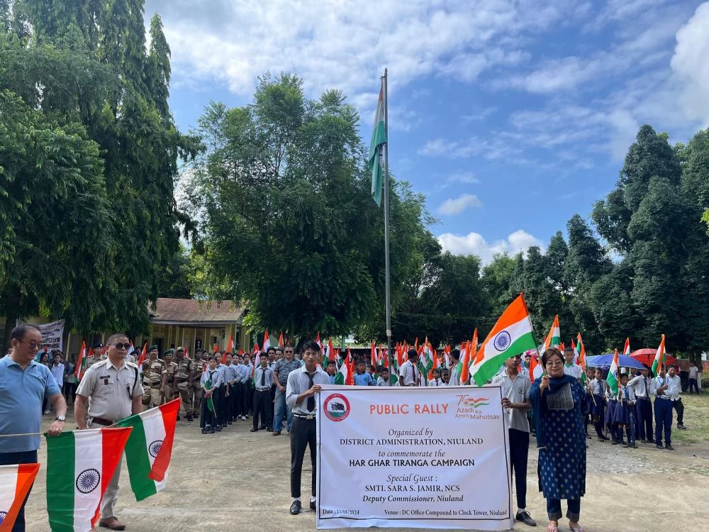 Sara S. Jamir, Deputy Commissioner, Niuland flags off “Har Ghar Tiranga” rally at Niuland Town on August 13. The march began from DC office and culminated at traffic point, Niuland Town.