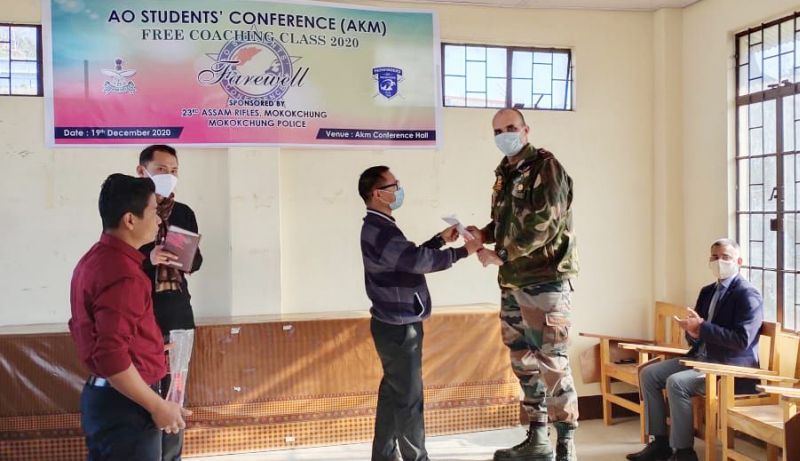 Mokokchung Battalion of Assam Rifles in a joint initiative with Nagaland Police and Ao Student Conference (AKM) sponsored free coaching classes for school dropout children from economically backward sections of society to help them achieve basic educational qualifications. The students were provided regular coaching of all subjects by qualified teachers for the duration of two months to help them clear their matriculation examinations. A total of 39 students benefited from the project. (Photo Courtesy: HQ IGAR (N)