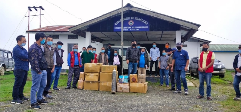 Arikumba, ADC Atoizu, Dr Obed and COVID Task force along with area elders receiving medicine & equipment to be distributed to Health Centre in and around Atoizu fight to COVID-19. The materials were donated by MLA Er Picto.