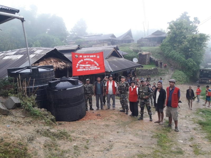 Tuensang Battalion of Assam Rifles under the aegis of HQ IGAR (North) installed a rain water harvesting facility for residents of Changlangshu village, Mon and handed it over in the presence of village of functionaries on July 27. The provision was installed in order to facilitate residents with storage facility, for use during community gathering and festivals. “Residents of the village face acute shortage of water during lean patch and it is hoped that the provision will be utilized to store potable water for use on need basis,” a press note from the PRO, HQ IGAR (N) stated. (Photo Courtesy: HQ IGAR-N)