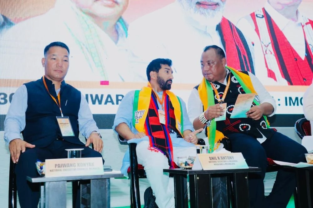 BJP National Secretary and Prabhari for Nagaland, Anil K Anthony is currently on an official visit to Mon district and Aboi (Org) district as part of the ongoing organisational district tour of the Bharatiya Janata Party (BJP) in the state. He was accompanied by BJP Nagaland State president Benjamin Yepthomi, former MLA and Incharge of Mon District Khekaho Assumi, National Executive Member BJYM Arvind Damani, with other state officials and party functionaries. The visit aims to strengthen the party's grassroots presence, engage with karyakartas, and assess ongoing organisational activities in the district. Meetings with local leaders, community interactions, and strategic planning sessions are part of the itinerary. (Photo Courtesy: Media Cell, BJP Nagaland)