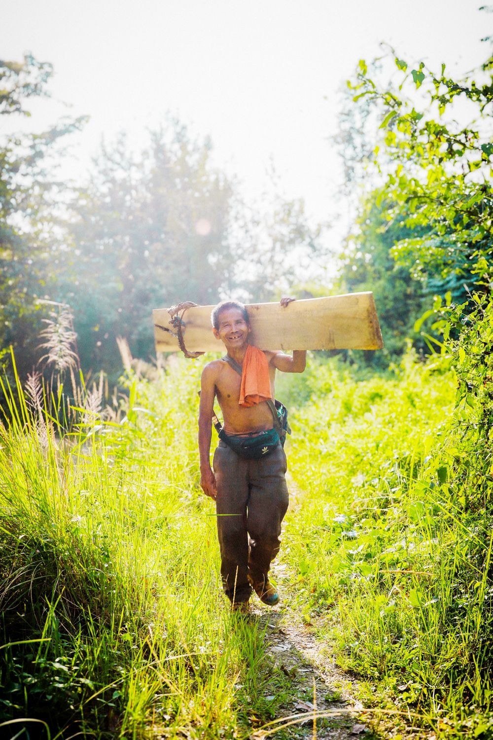 Nagaland 14th November 2023 A septuagenarian from Usütomi village, Zunheboto walks home from his field with a wooden plank. (Photo Courtesy: Viketo Yeptho)