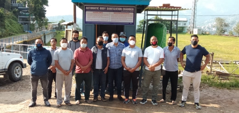 Dignitaries during the installation of Automatic Body Sanitization Chamber at D Khel, Kohima village on September 7. It was donated by Thinuokhrielie Yaotsu.