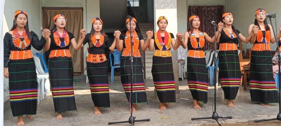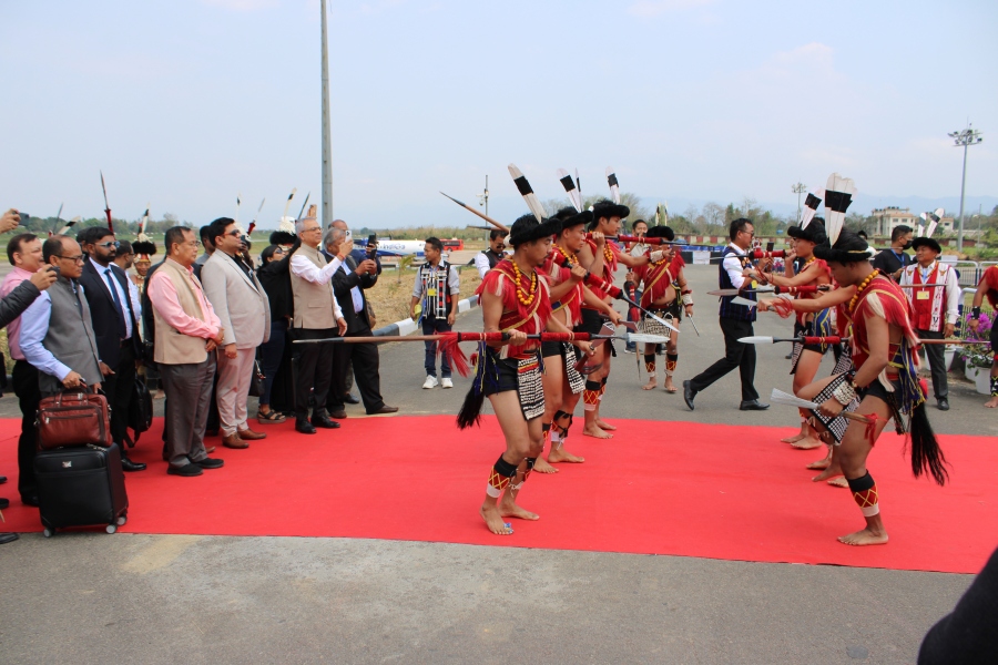 G20 Summit delegate from Romania, Simona with the string artists (Tati singers) on arrival at Dimapur Airport on April 4. The visiting delegate who is visiting North East for the first time commented, ‘the reception was thrilling and exciting.’ (DIPR Photo)