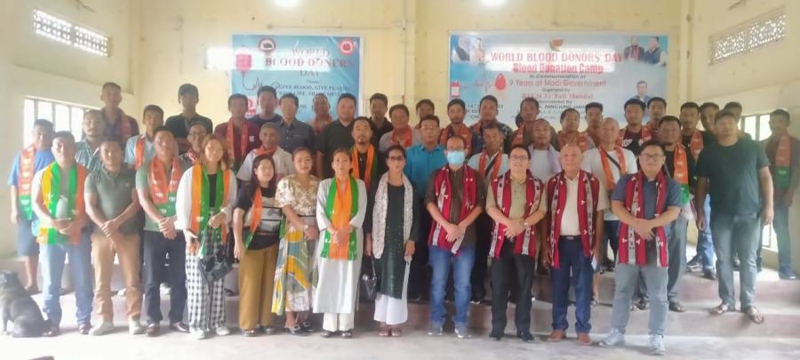 Bharatiya Janata Yuva Mandal, 21 Tuli Mandal observed World Blood Donor's Day on June 14, in commemoration of 9 years of Modi Government by organizing a Blood Donation Camp. The camp was held at Community Health Center in Tuli. The camp was sponsored by A Pangjung Jamir, MLA and Advisor, Fisheries and Aquatic Resources, Government of Nagaland. During the camp, 22 units of blood were collected from the donors.