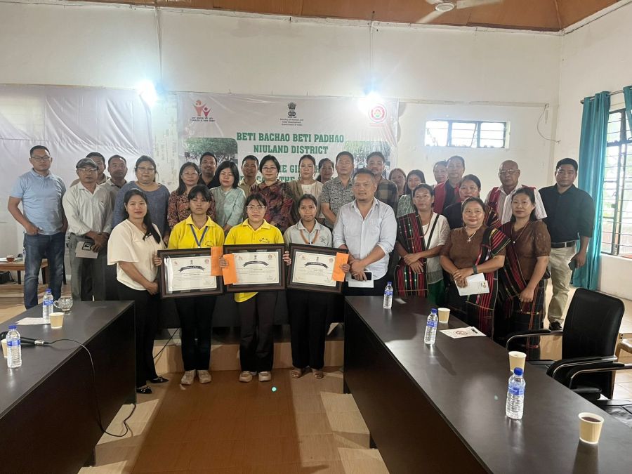 The Niuland district administration felicitated successful HSLC & HSSLC girl students on June 14 under Beti Bachao Beti Padhao at the conference hall of Deputy Commissioner Niuland. DC Niuland, Sara S. Jamir felicitated the meritorious students with cash prize and certificates. 2 (Two) HSLC students - Sanatombe Devi from GHSS Niuland, Toinali V. Muru from Shepherd High School and 1 (One) HSSLC student- Kihoile Pame, GHSS Niuland were felicitated.