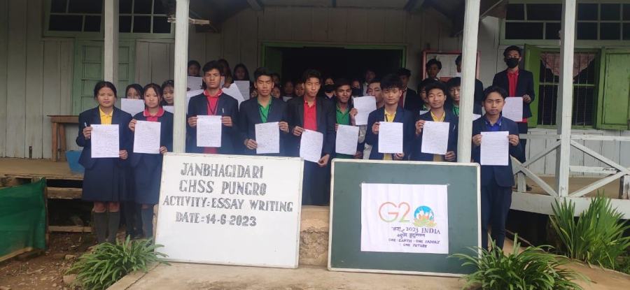 As a part of Jan Bhagidari events, Government Higher Secondary School, Pungro organized an essay writing competition on the topic “Importance & relevance of G20 in contemporary politics with special reference to India’s presidency’ on June 14 at the school premises. Altogether, 43 students from Class 12 took part in the event. Khevieyule Vanyalien K was adjudged as the winner of the competition while Phangremew and Manisha Kumari were the first and second runners up respectively. G. Omega Sema PGT, Zachelo Wetsah, PGT and Tansola PGT, were the judges during the competition.