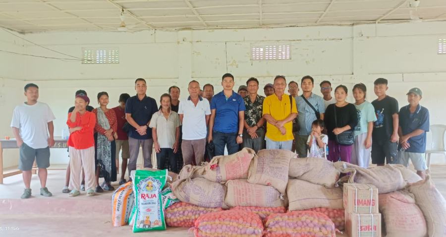 Village Council Chairman Union Jalukie Block covering 17 villages led by President Bedusai Theliio and Secretary, Liangkiebo Pame donated the food provisions for the Manipur displaced people at Ahthibung town on August 5. The relief committee including Kamhen Chongloi -chairman, Seilun Singson-Finance Secretary and Tonga Hangsing- Secretary received the donation on behalf of the displaced people in a brief function held AR Town Hall Ahthibung.