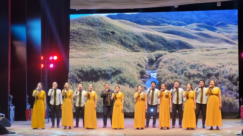 Various artists performing during the cultural programme organised to welcome the G20 delegates who arrived for the Business Meet (B20) in Kohima at Capital Cultural Hall on April 4 evening. The delegates took a glimpse of the tribal colours through song and dance. The Business 20 (B20) is the official G20 dialogue forum with the global business community. (Morung Photo)