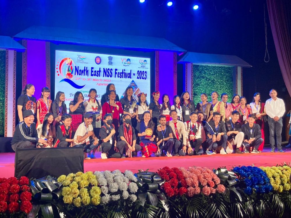 National Service Scheme Cell of Pranabananda Women’s College and Yehmi Memorial College, Dimapur represented the Nagaland State NSS Team at the recently held North East NSS Fest 2023 from March 27 to 31 at Agartala (Tripura). It was organised by Tripura NSS cell, Education (YAS) department, Tripura, Regional Director of NSS Guwahati in collaboration with Ministry of Youth Affairs & Sport, GoI. The team won title of ‘best contingent’ among 8 states, 1st prize in the Rangoli Competition under the theme ‘G20’ and appreciation certificate for ‘voluntary blood donation.’