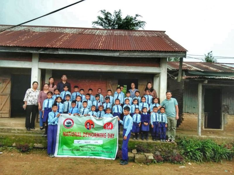 2nd Round National Deworming Day was observed at GMS Model Village, 5th Mile Dimapur on August 10. The programme was organized under Rashtriya Bal Swasthya Karyakram (RBSK) Dimapur. Dr. Kadila, Medical Officer In-charge, RBSK sensitised the school children on the benefits of de-worming twice a year. She informed them on the harmful effects of STHs as well. After a brief awareness talk, the School Health Team Dimapur also conducted diseases screening and medical checkups of the children. Mop-up round to cover missed out children will be held on August 17. (Photo Courtesy: DPMU Dimapur)