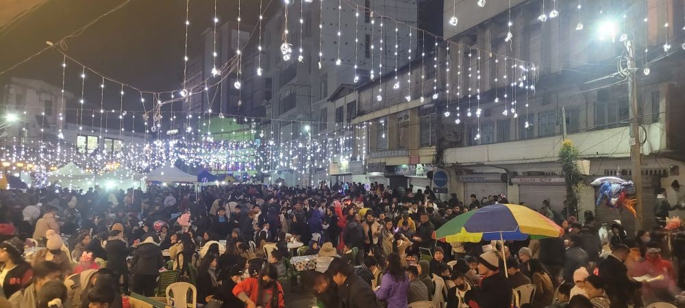 Hundreds of revelers to the last day of Kohima Night Carnival in the main town of Kohima on December 10). This night carnival, organized by Kohima Chamber of Commerce & Industries (KCCI), is part of 24th Hornbill Festival 2023. 150 stalls have been set up from Y Junction to Razhu Point, Kohima. (Morung Photo)