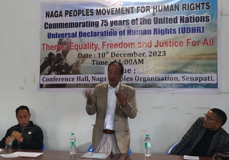 The Zunheboto District Level Consultative Committee (DLCC) was held at DC conference hall on December 7. A DIPR report stated that Zunheboto DC Rahul Bhanudas Mali, IAS in his short speech said tobacco is affecting life of many people starting from adult to elderly people and advised everyone to refrain from using any tobacco kinds. “Anti-drug hospital has been proposed and expected to been established in the coming years,” he stated. Zunheboto SP Lupe Moza, NPS congratulated to all the staff involved and requested that certified tobacco free zone Institute and village should perform consistently in the fight against eradicating drugs abuses. Total of 19 schools and three village i.e. Aghuyito, Shoixe and Zhekiye have official been certified as Tobacco Free Zone Villages.Members of the Nagaland National Pension System Government Employees Forum (NNPSGSEF) led by its president Moanungsang Jamir attended the Pension Jay Ghosh Maharally at Jantar Mantar organised by the All India National Pension System Employees Federation (AINPSEF) on December 10. The maharally was held demanding that the Government of India scrap the National Pension System (NPS) and restore Old Pension System (OPS) for a secured pension.The Nagaland Institute of Medical Sciences and Research held its pre-Christmas celebration on December 9 at the hostel premises. Rev Zhabu Yimsung was the speaker, in which he delivered the Christmas message. He highlighted about understanding the love of God shown through the life of Jesus and the joy and meaning of Christmas. The Naga People Movement for Human Rights (NPMHR) Secretary General NPMHR Neingulo Krome Secretary addresses the commemoration of the 75th years of the United Nations’ Universal Declaration of Human Rights (UDHR) in Senapati on December 10. Members of Naga Peoples’ Organisation (NPO)All Naga Students' Association of Manipur, Naga Women Union, tribal leaders of various communities, well wishers and others attended the commemoration. According to a report, the event re-affirmed a resolution of Nagas’ rights to “live as a people through unification of all Naga areas” and called for reclaiming “Naga peoplehood.” It also included a silent prayer in remembrance of Naga martyrs, a dialogue and envisioning session on equality, freedom, and justice, as well as a prayer for peace and justice.