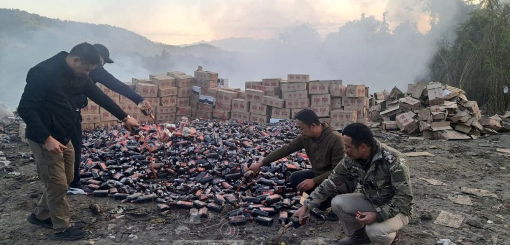 Huge quantity of IMLF which were seized on different occasion was destroyed in Mokokchung on December 2. The destruction of the seized IMLF was done at MMC dumping site in the presence of Destruction Committee comprising of, Public Prosecutor (PP) Mokokchung, Chairman, SDPO Mokokchung, Member, SDO (C) Mokokchung, Member, DPRO Mokokchung, Member and PI Mokokchung, Member. Sr Superintendent of Police, Mokokchung, Vesupra Kezo, was also present while carrying out the destruction. (DIPR Photo)