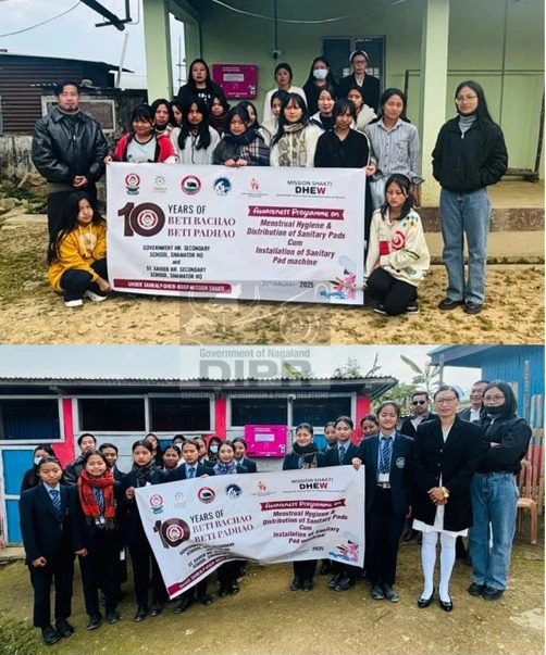As a prelude to 50 years of the Kohima Lotha Hoho, a cleanliness drive was held recently along the stretch from New Secretariat complex to Sanuoru bridge, Kohima. MLA Achumbemo Kikon, who was the patron of the programme launched the cleanliness drive.A programme for installation of Sanitary pads vending machine cum awareness camp on menstrual hygiene and distribution of sanitary pads was held at St. Xavier Higher Secondary School, Shamator and Government Higher Secondary School, Shamator on January 31 on account of 10 years celebration of Beti Bachao Beti Padhao (BBBP) Scheme. Sanitary napkin vending machine was installed under the aegis of Beti Bachao Beti Padhao by the District Administration, Shamator.