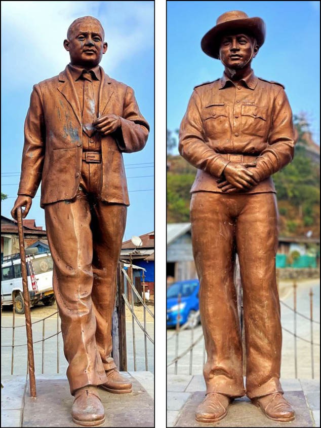 Memorial statues of General Kaito Sukhai and J Kughato Sukhai, two prominent figures in the Naga political struggle, unveiled to honor their sacrifices for Naga sovereignty. Erected by the Satakha Area GB Union, the statues serve as a lasting tribute to their courage and dedication to the cause of Naga freedom. Inaugurated by G Kaito Aye, Minister of Roads & Bridges, on December 19, 2012, it is situated in the heart of Satakha Town, National Highway 702A under Zunheboto District. (Morung Photos)