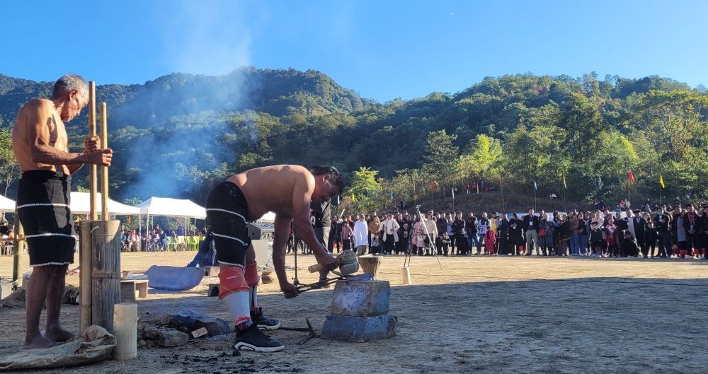 Villagers demonstrate traditional farming tools making during the recent Golden Jubilee celebration of Rünguzumi Youth Association at Rünguzu village in Phek district. (Morung Photo)