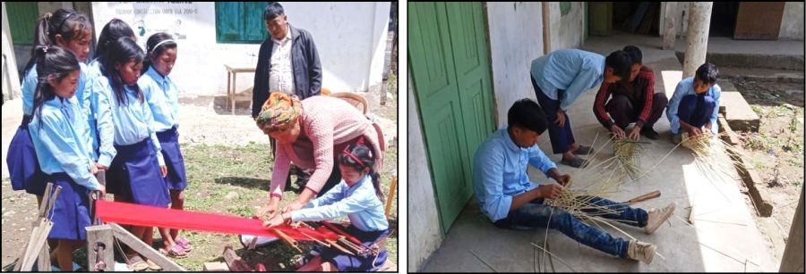 As part of the ancestral knowledge sharing session under PIG NECTAR at GMS New Risethsi in Kiphire District, the girls were taught loin loom weaving, while the boys were taught basket making. (Photo Courtesy: Nagaland Education Project-The Lighthouse (NECTAR)