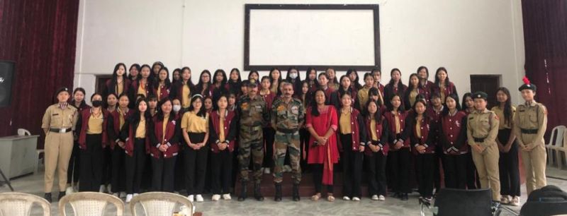NCC orientation programme for students of 1st Semester of Sazolie College, Jotsoma was conducted by Colonel Manjeet Katoch, Commanding Officer of 1 Nagaland Girls NCC Battalion at the college auditorium on July 27. A total of 128 students along with the Principal, teachers and ANO attended the event. (Photo Courtesy: PRO (Defence), Kohima & Imphal)