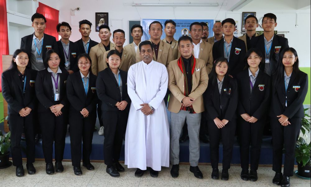 Don Bosco College, Kohima conducted a programme for the investiture of the Students Forum with Kohima Village Students’ Union president as the special guest on July 28. The programme was chaired by Zavelu Kezo, Dean of Student Affairs, followed by invocation by Fr Christu Doss and welcome speech was given by Fr Dr P Suresh, Principal, DBCK while the oath taking ceremony was initiated by Dr Tovika, Nodal Officer, DBCKSF. Speeches were also delivered by Jennifer Wotsa, Outgoing GS DBCK and Charles Yhome, Present GS, DBCK. (Photo Courtesy: Don Bosco College, Kohima)